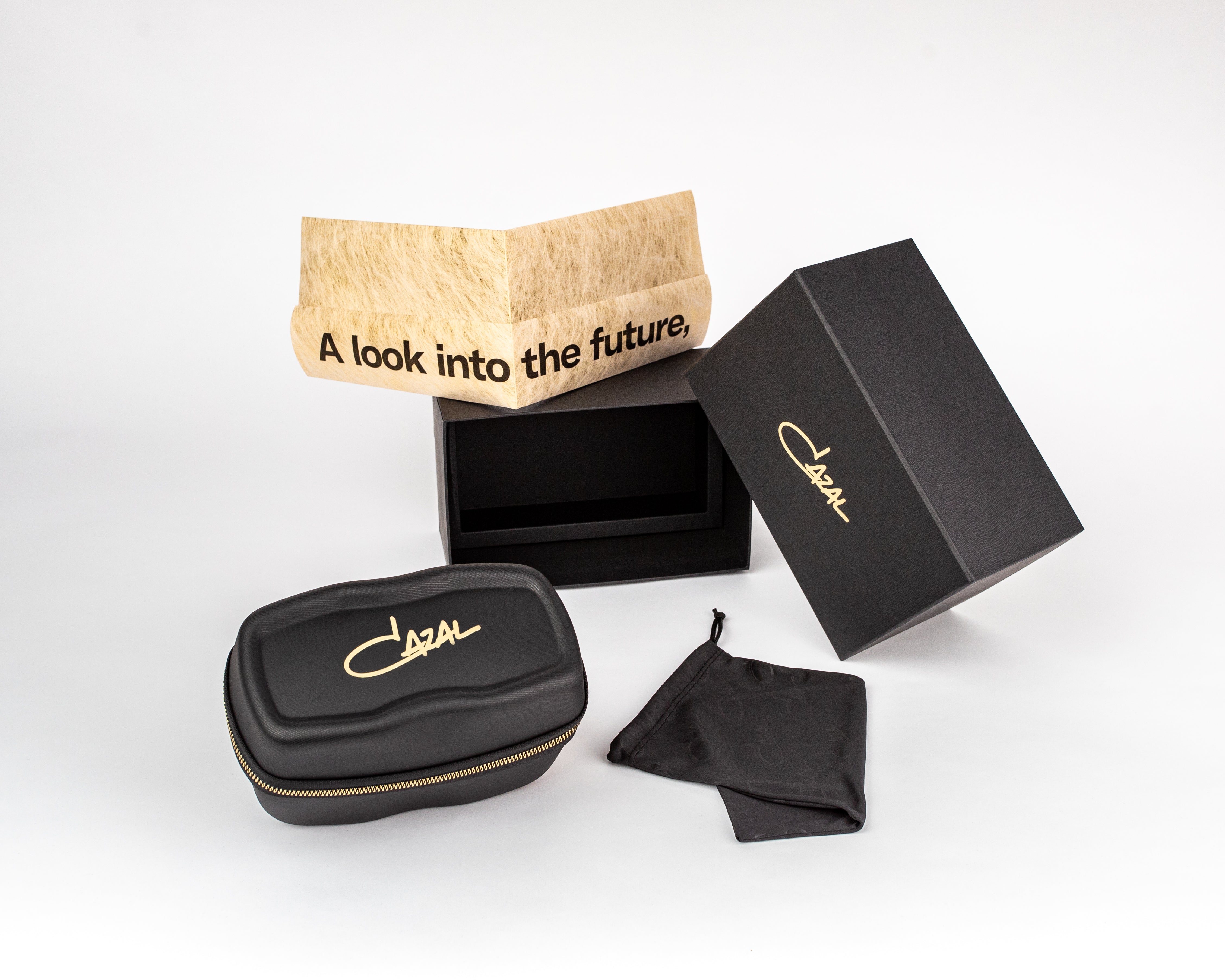 - Adjustable elasticated strap with gold CAZAL logo branding.